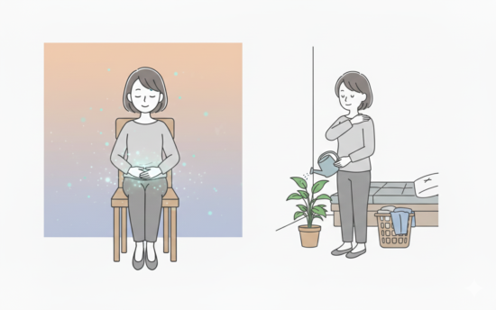 朝の支度前に「今日の予定を淡々とこなしている自分」を短く思い描く、寝る前に「落ち着いた状態で家事を進めている場面」をイメージするなど、具体的な動作に基づいたイメージを使うと負担なく取り入れられます。