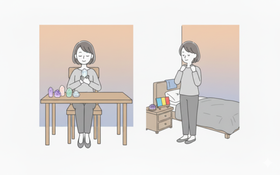 また、寝る前に枕元に小さなクリスタルを置き、数分だけ静かに呼吸しながら体の緊張を確認する方法も手軽です。