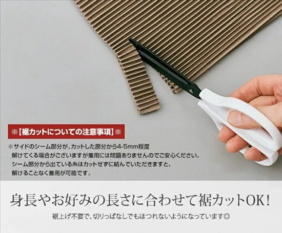 裾を切っても本当にほつれない。洗濯してもプリーツが崩れない。