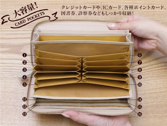口コミレビューでも、カードが見やすく、たくさん入れてもファスナーが閉まると好評です。