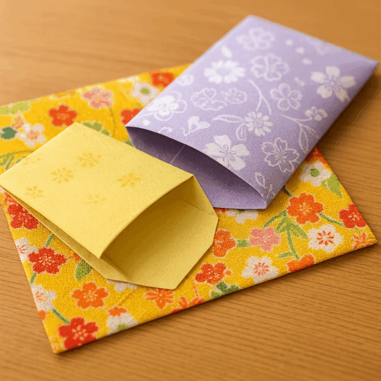 風水では、お金を包む袋や折り紙にも意味を持たせます。