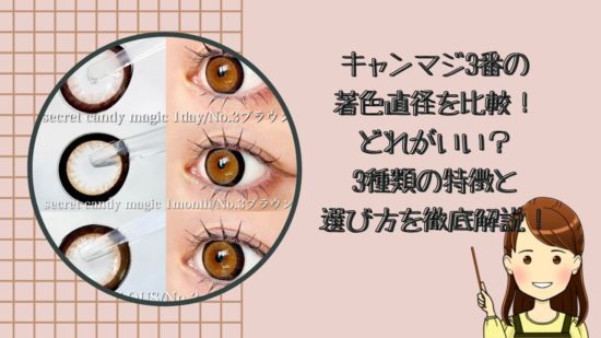 キャンマジ3番の著色直径を比較!どれがいい?3種類の特徴と選び方を徹底解説! 公開日:2025年1月25日 カラコンコスメ・健康・医薬品 カラコン選びで迷っている方に大人気の「キャンマジ(Candy Magic)」。 中でも注目されているのが、NO.3ブラウンです! このアイテムは「可愛さと自然さの両立」が特徴で、特に10代・20代の女性を中心に支持を集め […] 続きを読む