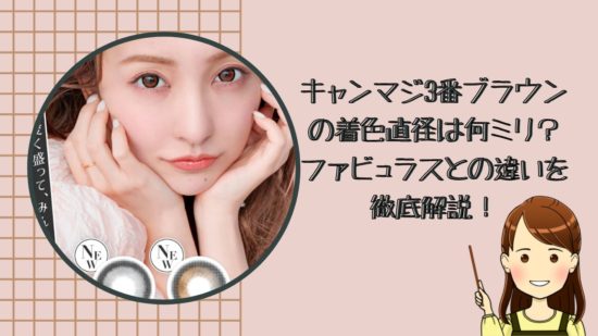 キャンマジ3番ブラウンの着色直径は何ミリ?ファビュラスとの違いを徹底解説! 公開日:2025年1月21日 カラコンコスメ・健康・医薬品 カラコン愛用者の間で絶大な人気を誇るキャンマジ(キャンディーマジック)。その中でも特に「3番ブラウン」は、「盛れるカラコン」としてリピート買いする人が続出している商品です。一方で、同じ「キャンマジ」と呼ばれることの多いフ […] 続きを読む