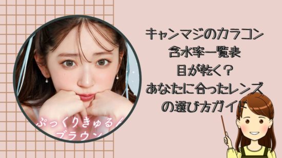 キャンマジの含水率一覧/目が乾く?あなたに合ったレンズの選び方ガイド 公開日:2025年1月24日 カラコンコスメ・健康・医薬品 カラコンを選ぶとき、「含水率」についてどれだけ意識していますか? キャンマジ(Candy Magic)は、盛れるカラコンとして人気のブランドですが、レンズを選ぶ上で「含水率」は非常に重要な要素です。 なんとなく「高含水の […] 続きを読む